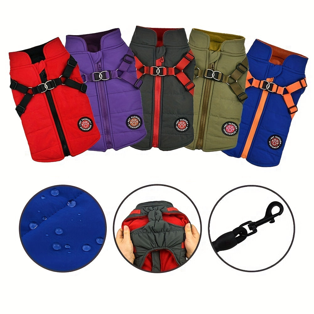 Wasserdichter Winterhundemantel mit verstellbarem Brustgeschirr