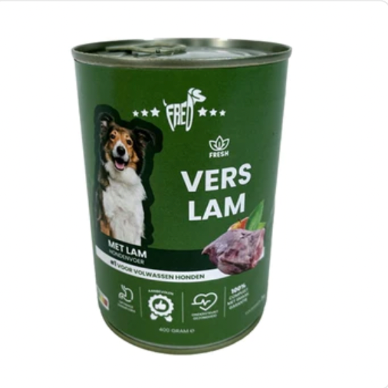 Composition: 65% meat and selected slaughterhouse products (at least 4% lamb), rice flour, linseed oil, 0.2% broth, minerals