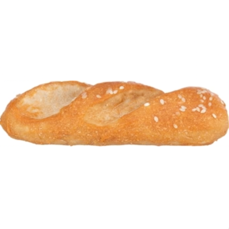 Although it looks like bread, there is no bread in this snack: these fun treats are made entirely of rawhide and chicken! This delicious "baguette" is made of chicken and beef skin covered with sesame seeds to create a real pastry. This snack is also gluten-free and made without added sugar. Delicious and fun to give as a gift, as a reward or as a snack!